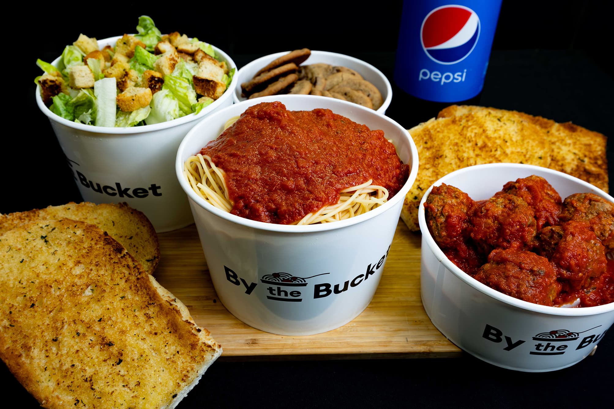 By-the-Bucket is a restaurant that serves delicious, hot spaghetti to go. Located in Anthem, Arizona.