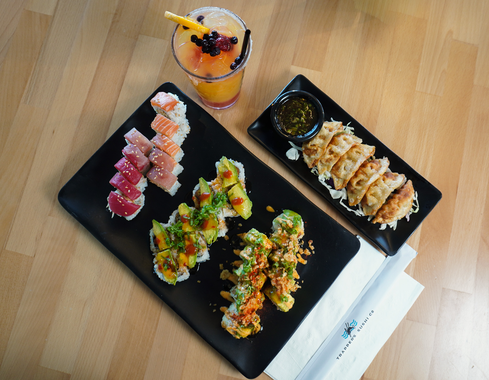 Trapper’s Sushi Co. in Anthem offered a laid-back, modern sushi dining experience combining traditional and creative Asian-fusion flavors. The restaurant featured an all-you-can-eat sushi bar all day, with a diverse menu of long rolls, nigiri, sashimi, and appetizers made from high-quality ingredients. The relaxed ambiance was complemented by a full bar serving specialty cocktails, beer, sake, and wine, making it a great spot to hang out with friends or family. With live sports on TV and friendly sushi chefs and staff, Trapper’s provided a welcoming, upbeat atmosphere. They also catered to dietary needs by offering gluten-free, vegetarian, vegan, and kids’ menus.